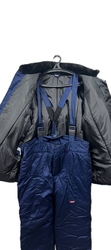 Куртка прямого силуэта, с притачной утеплённой подкладкой, с центральной застежкой на тесьму молния; ветрозащитной планкой застёгивающейся на четыре кнопки; с кулисой по линии талии со шнуром, концы шнура выводятся из обметанных петель на подборте и регулируются фиксаторами и наконечниками; втачными рукавами; отложным воротником.