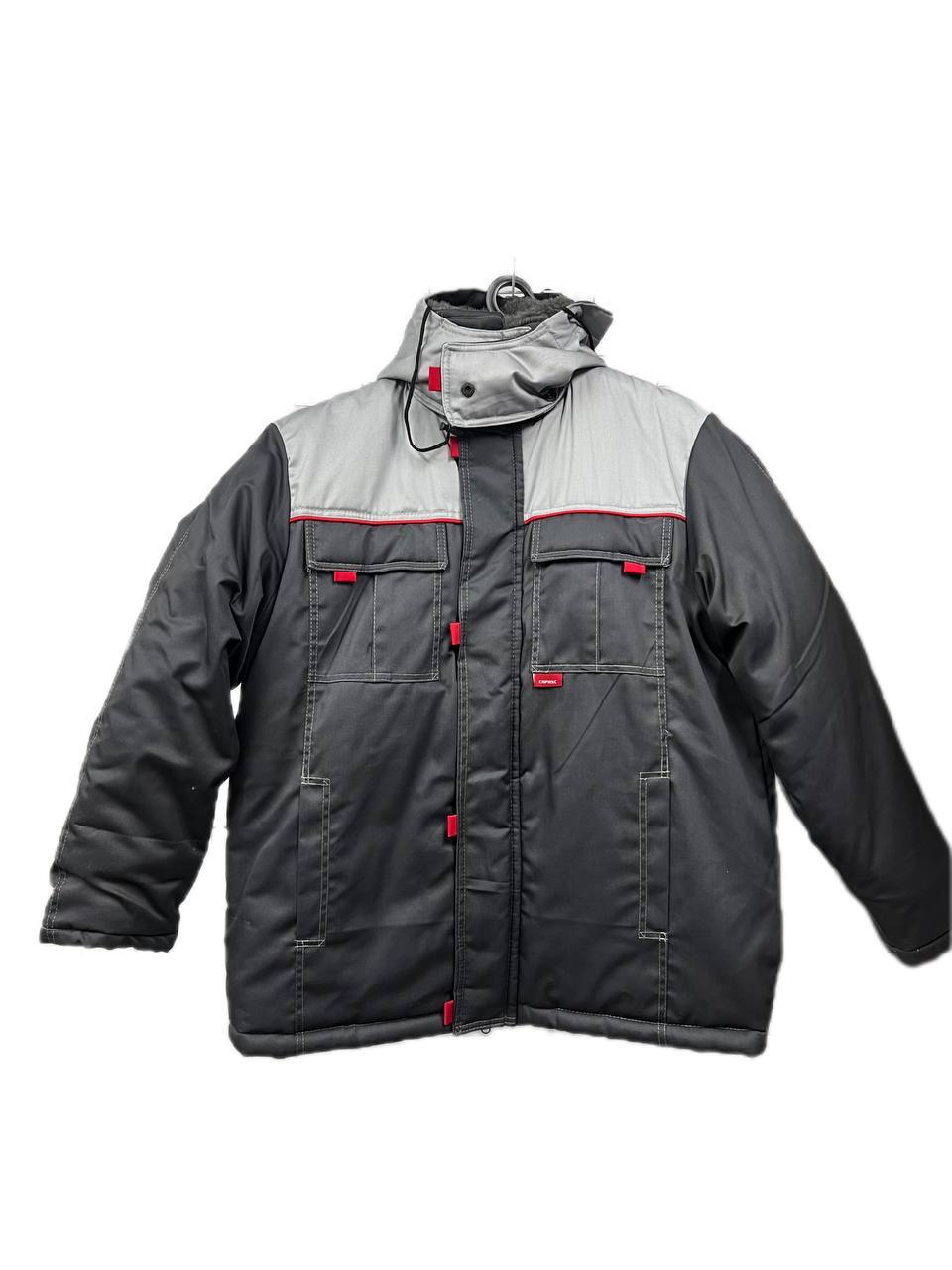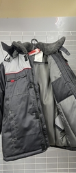 Куртка длинная прямого силуэта; с притачной утеплённой подкладкой; с центральной застёжкой на тесьму - «молния» двухзамковую; с ветрозащитной планкой на левой полочке застегивающиеся на потайную ленту «контакт» 4шт длиной 4,0см и 4-мя малыми декоративными патами контрастного цвета; с отложным меховым воротником; с подпланкой правой полочки.