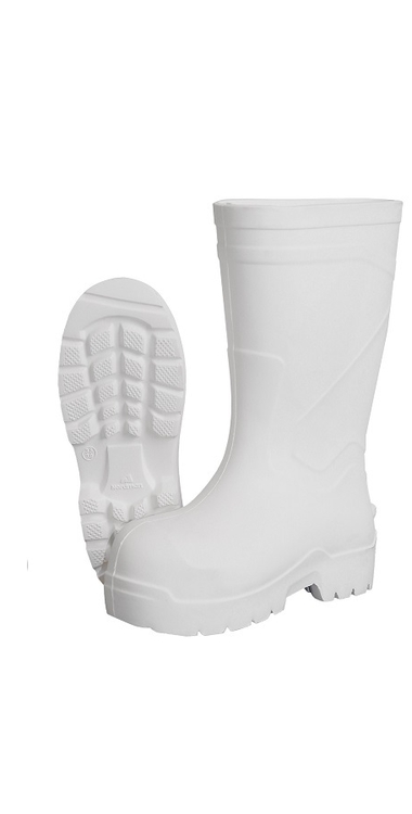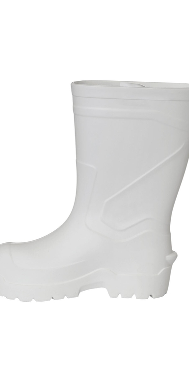 Cапоги Nordman Active S КЩС МБС белые из ЭВА с внутренними защитными подносками (200 Дж). Сапоги изготовлены из высококачественного пластиката, допускающего круглогодичную эксплуатацию в любых агрессивных средах при любой температуре. Модель комплектуется съемной теплоизолирующей перфорированной стелькой из ЭВА полотна толщиной 7 мм для повышения удобства повседневной эксплуатации и улучшения воздухообмена стопы. Преимущества обуви из ЭВА: • значительно меньшая масса пары по сравнению с ПВХ, резиной и ПУ позволяет снизить нагрузку и повысить эффективность труда • полная инертность материала ЭВА к воздействию микроорганизмов и агрессивных сред • улучшенные амортизационные свойства материала сапога и стельки позволяют использовать обувь более продолжительное время без существенного дискомфорта, вызванного усталостью Защитные свойства:В, З, К 80, Щ 50, Нс, Нм, Мун 200. Высота сапога 34 см.
