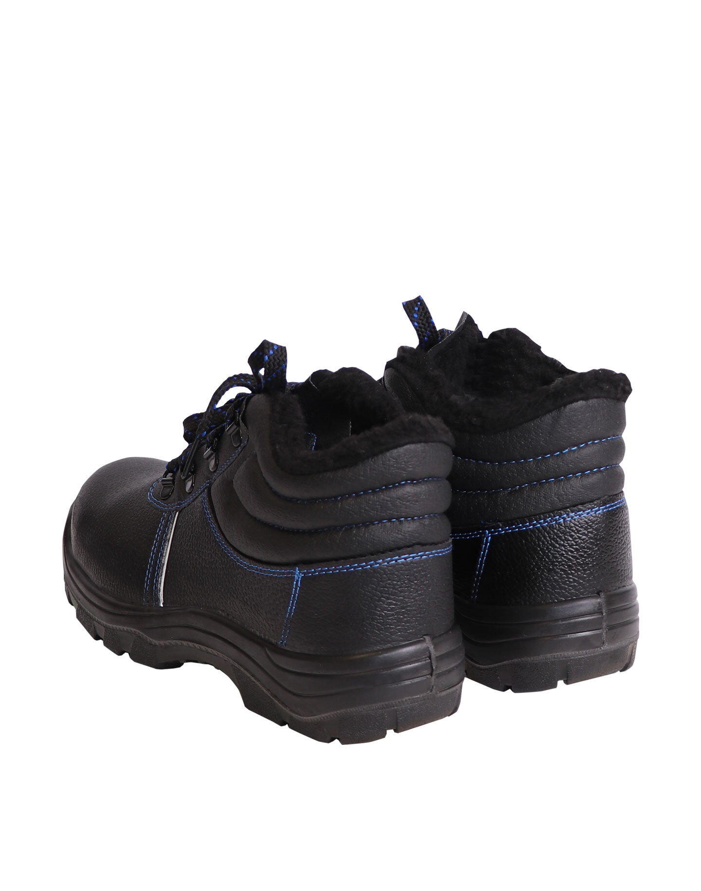 Ботинки из кожи c мягким кантом и глухим клапаном на подкладке из искусственного меха. Шнуровка, проходящая через металлические петли, обеспечивает комфортную адаптивную посадку. Светоотражающие элементы повышают видимость работников в темное время суток и на неосвещенной территории. В модели предусмотрена съемная стелька. Однослойная маслобензостойкая полиуретановая подошва литьевого метода крепления имеет вставку в пяточной части подошвы, обладающую амортизационными свойствами и способную гасить ударные нагрузки при ходьбе. Глубина протектора ходового слоя обеспечивает хорошую сцепляемость с поверхностями и препятствует скольжению за счет рельефа протектора. Металлический подносок обеспечивает защиту пальцев стопы от механических повреждений ударной прочностью до 200Дж.