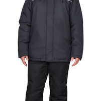 Полукомбинезон прямой с застёжкой спереди на молнию, с отрезной грудкой и отрезной спинкой, с бретелями. Полукомбинезон с накладными карманами спереди, сзади и на боковых швах, с объёмными наколенниками из плотной, непромокаемой ткани с верхним входом для амортизационного вкладыша. Бретели регулируются при помощи застежек-фастексов и резинки.