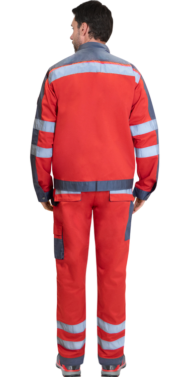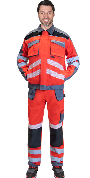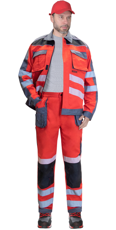Костюм летний состоит из куртки и брюк, в костюме предусмотрены СВ-элементы для сигнальной видимости.