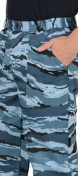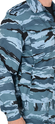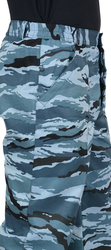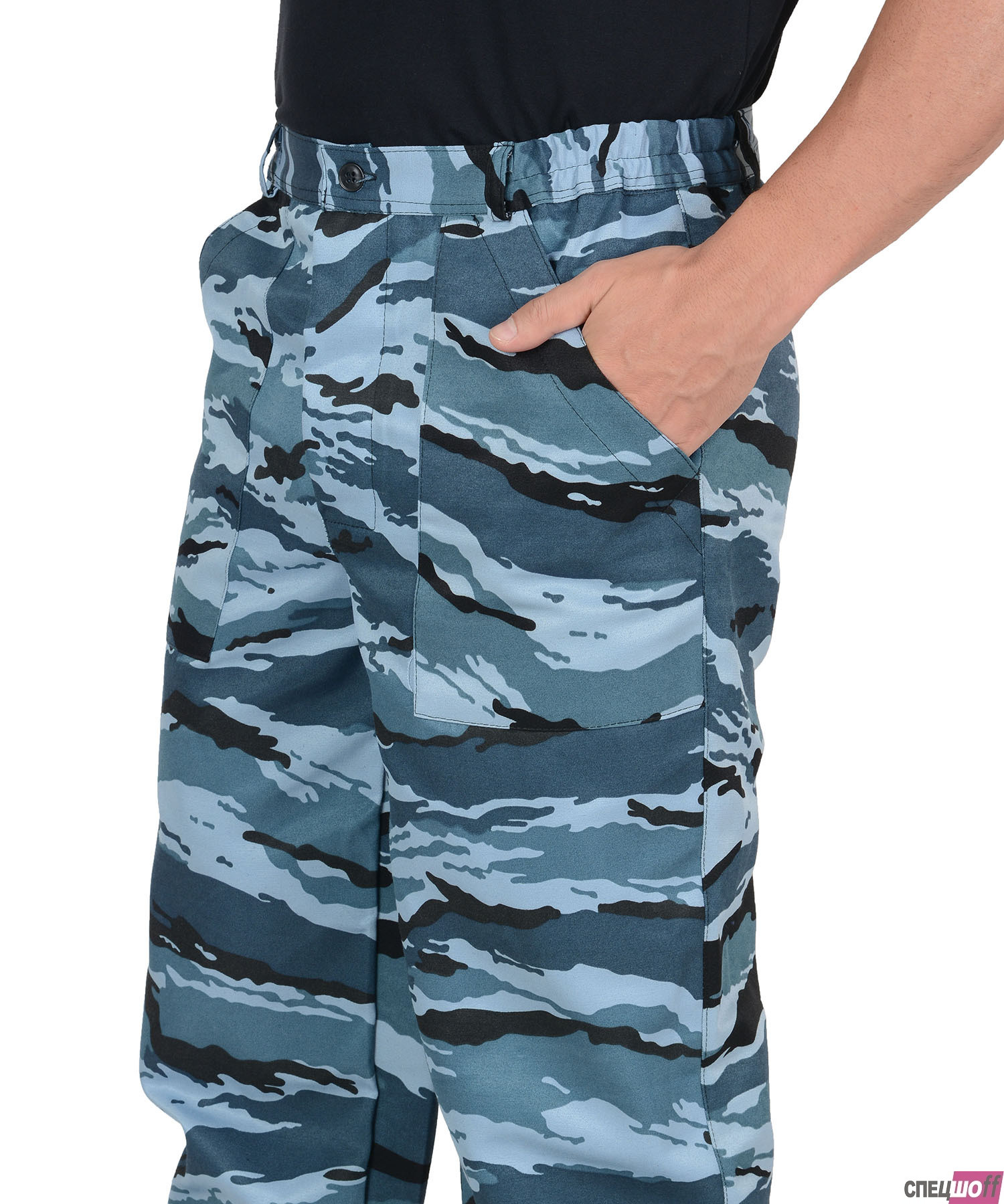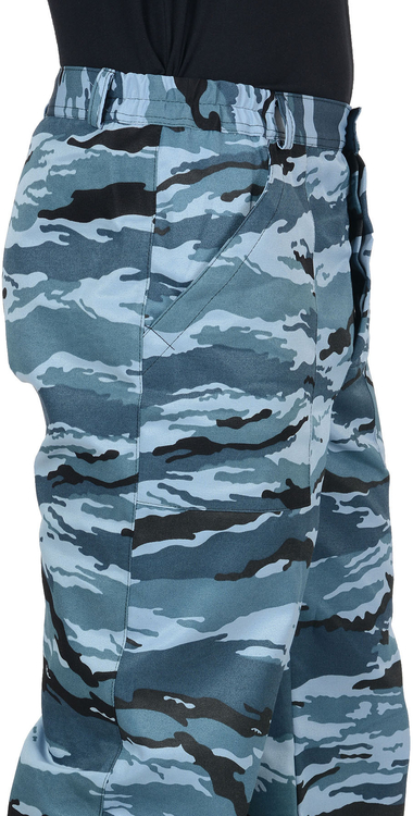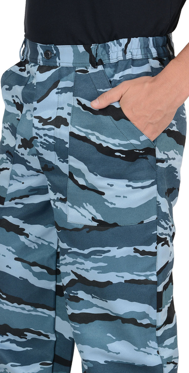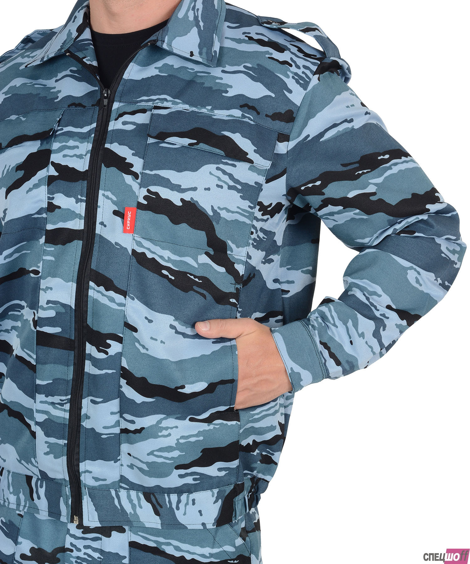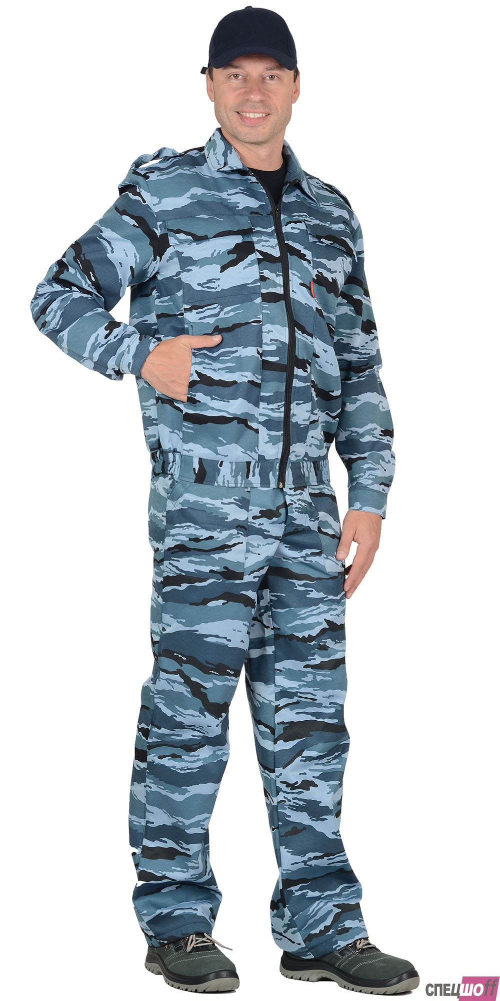 Куртка короткая, прямого силуэта, с отложным воротником, с центральной бортовой застежкой на молнию; с погонами по плечам на пуговицах, с притачным поясом, понизу частично стянутым резинкой; с нагрудными карманами, с боковыми карманами в вертикальных швах. Рукава, втачные, двухшовные с манжетами на пуговицах. Брюки с притачным поясом, застёгивающимся на 1 петлю и пуговицу; с 5 шлевками и резинкой ткацкой по боковым швам брюк; с застежкой гульфика на три петли и пуговицы; с двумя накладными боковыми карманами с наклонным входом. Ткань верха: смесовая с ВО пропиткой состав: 80% п/э, 20% х/б; пл. 220 г/м² ТУ 8550-001-81391241-2008