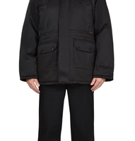 Куртка охраны длинная утепленная прямого силуэта, с центральной застёжкой на тесьму - «молния» и внешним ветрозащитным клапаном на липучки. Изделие с отложным воротником, с пристёгивающимся капюшоном, верхними и нижними накладными карманами. Рукава втачные с внутренними трикотажными манжетами.