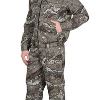 Куртка типа «анорак» длинная прямого силуэта, с центральной застёжкой в верхней части куртки на тесьму - «молния», с отлетными складками-ловушками в верхней части полочки и спинки, притачным капюшоном с противомоскитной сеткой, с большим накладным карманом с застежкой на тесьму - «молния» вверху кармана и два входа в карман с боковых сторон на тесьму -«молния». Рукава втачные с налокотниками и отлетными складками-ловушками в верхней части рукава. В рукав вшивается манжет с трикотажным напульсником, по низу рукава собираются на резинку ткацкую. Ширина низа куртки регулируется резинкой шляпной и двух дырочным фиксатором. В куртке предусмотрена юбка из ткани «Бязь».Брюки с притачным поясом, стянутым на резинку ткацкую; с 5 шлевками; с застежкой гульфика на тесьму – «молния»; с карманами в рамку на тесьму – «молния» с настрочкой листочкой на передних половинках; с накладными полуобъёмными карманами на боковых швах и фигурными клапанами-ловушками застегивающиеся на потайную липучку 5,0см, с задними карманами на тесьму – «молния», с наколенниками, с пуфтой из ткани Бязь.