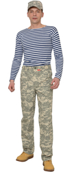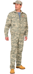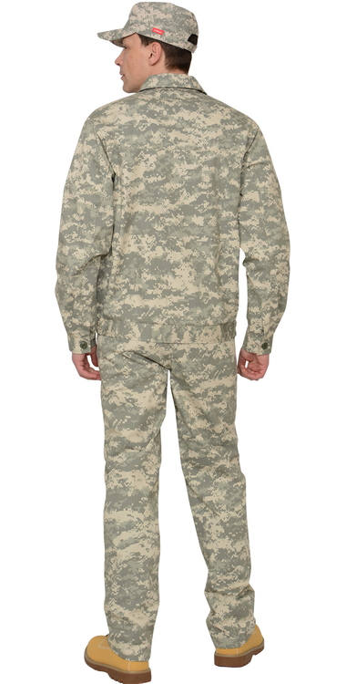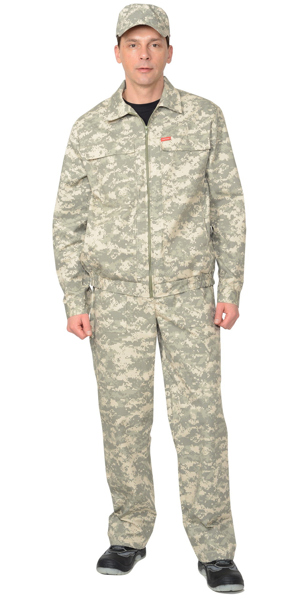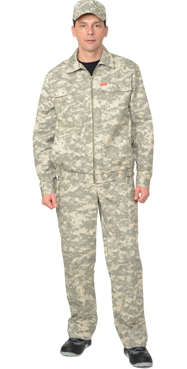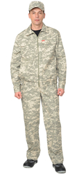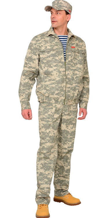 Тк."Рип-Стоп", ВО, 65% п/э., 35% х/б, 215 г/кв.м. Куртка короткая, с отложным воротником, с центральной бортовой застежкой на тракторную молнию ; с притачным поясом частично стянутым резинкой; с нагрудными карманами и клапанами на липучках, с боковыми карманами в вертикальных швах. Рукава, с манжетами на пуговицах.Брюки с притачным поясом, заст.гивающимся на пуговицу; с 5 шлевками и эластичной тесьмой по боковым швам брюк; с застежкой гульфика на три петли и пуговицы; с двумя накладными боковыми карманами с наклонным входом. ГОСТ 12.4.280-2014