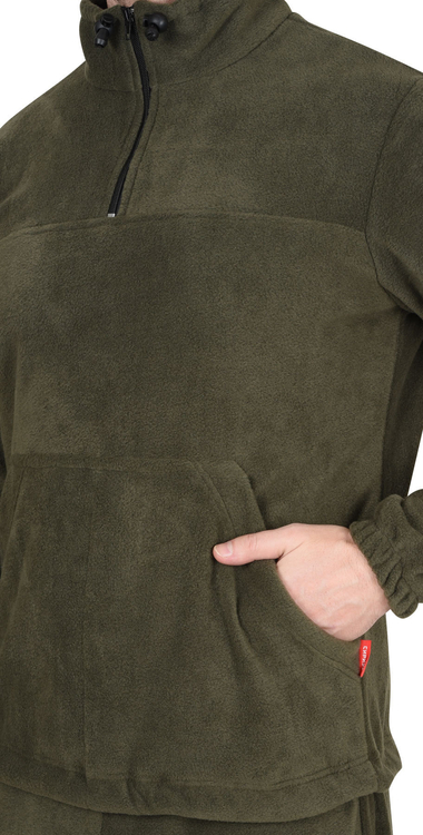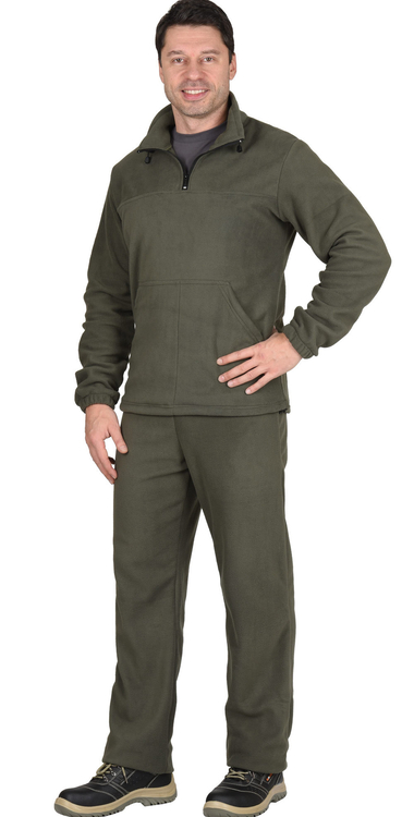 Джемпер прямого силуэта со шнуром по воротнику -"стойке" и низу, резинкой по низу рукавов, с одним нижним накладным фигурным карманом с вертикальным делением по центру на два кармана. Брюки прямого покроя;с резинкой и шнуром. ТУ 8550-001-81391241-2008.