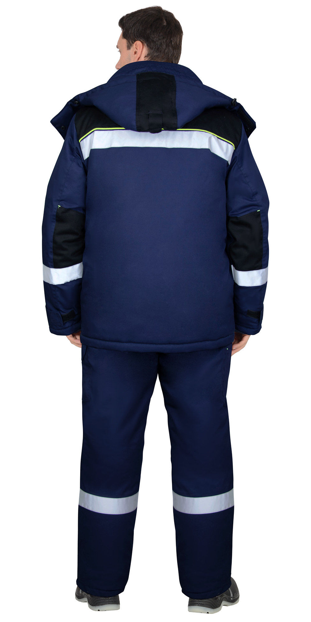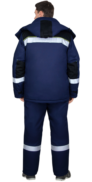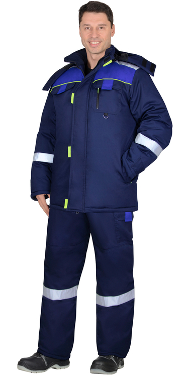 Костюм зимний состоит из куртки и полукомбинезона. В костюме – на куртке и полукомбинезоне предусмотрена лента светоотражающая для обеспечения сигнальной видимости.