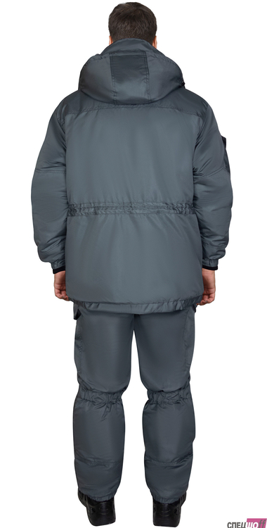 Костюм состоит из куртки, удлинённой и брюк.