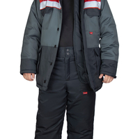 Костюм зимний, утеплённый, состоит из укороченной куртки и полукомбинезона.