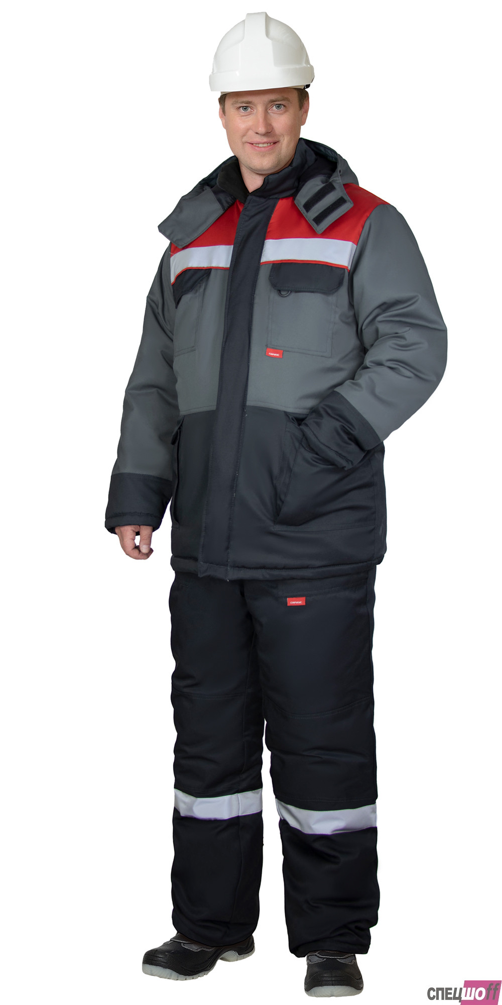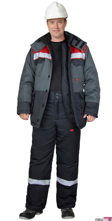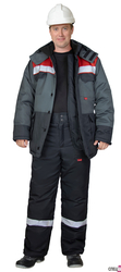 Костюм зимний состоит из куртки и брюк. В костюме – на куртке и брюках предусмотрена лента светоотражающая для обеспечения сигнальной видимости.