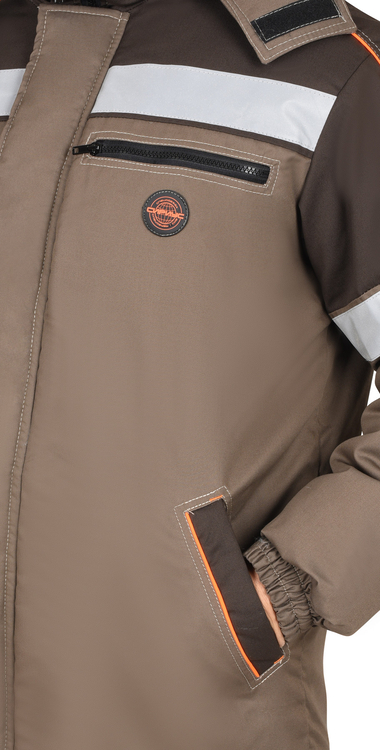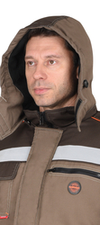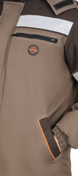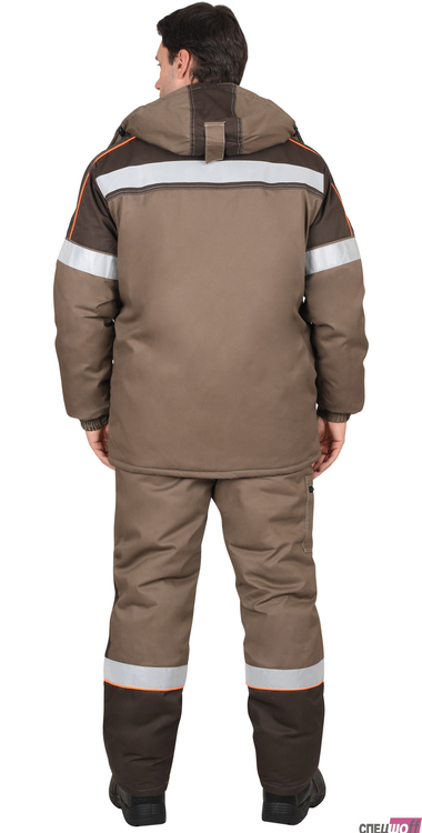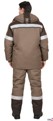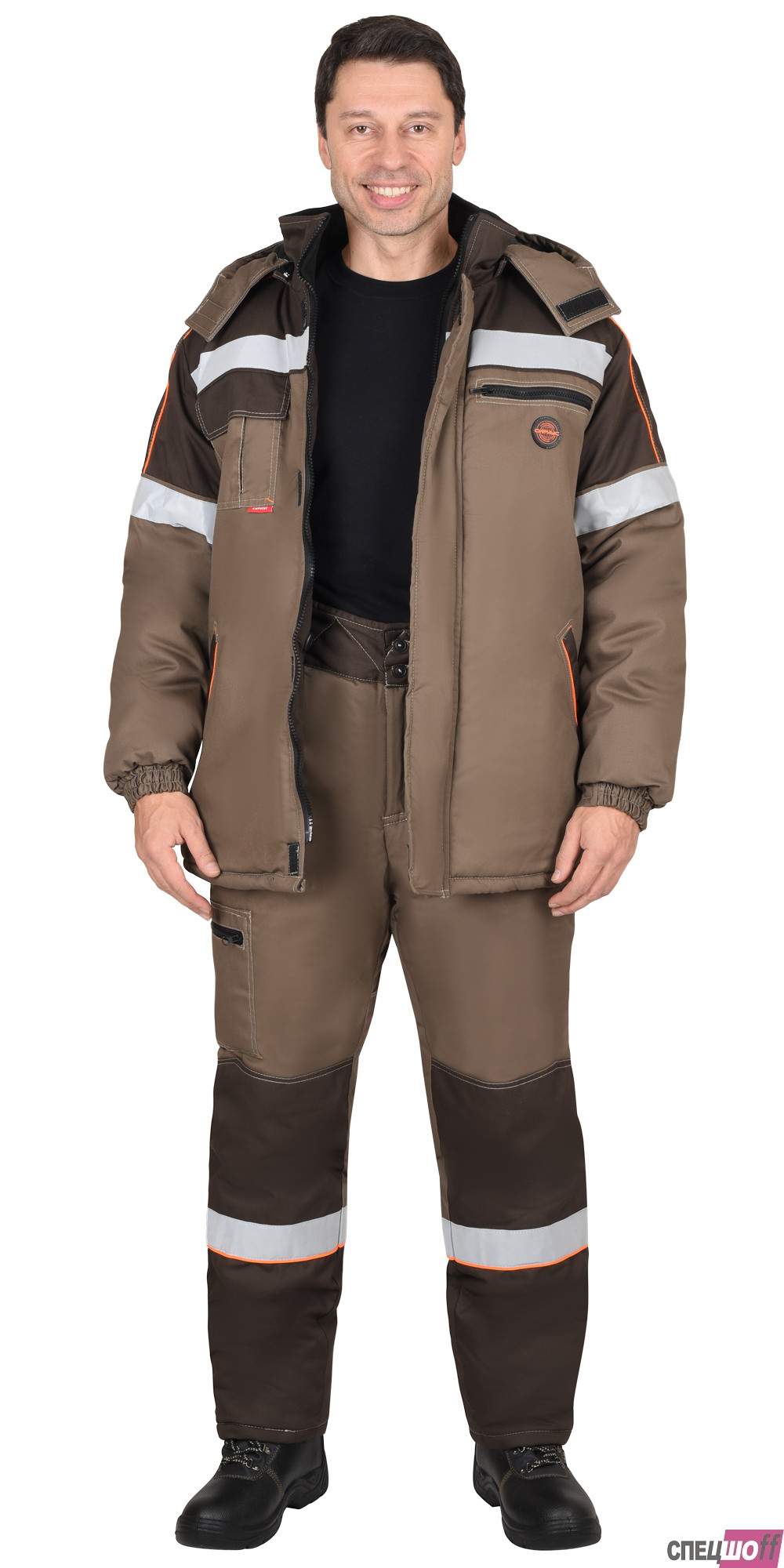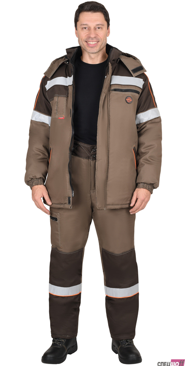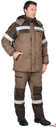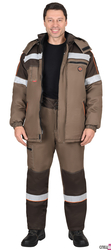Костюм зимний состоит из куртки и брюк, в костюме предусмотрена светоотражающая полоса для обеспечения видимости.