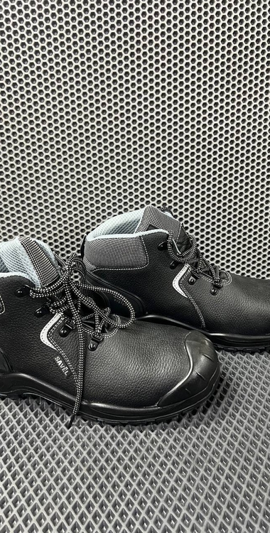 Выдерживает случайно брошенный груз или сдавливание крупногабаритным объектом, т.к. обувь снабжена защитным подноском из поликарбоната с максимальной ударной нагрузкой (МУН) 200 джоулей (равносильно падению груза массой 20 кг с расстояния 1 метр)