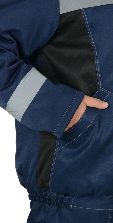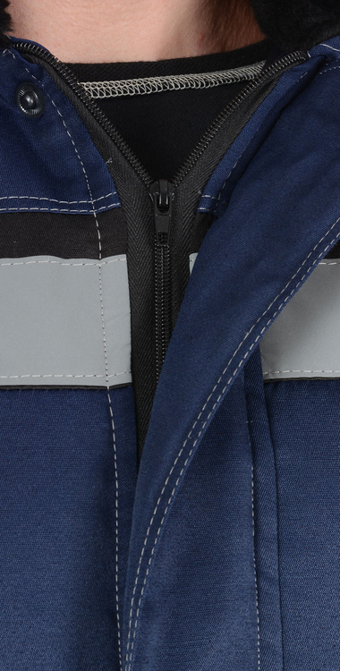 КУРТКА укороченная с отложным меховым воротником, с центральной застежкой на тесьму "молнию", накрытую ветрозащитным клапаном, застегивающимся на кнопки, притачным поясом частично стянутым резинкой. Рукава с внутренними трикатажными манжетами. ПОЛУКОМБИНЕЗОН с регулируемыми за счет эластичной тесьмы и фастексов бретелями, центральной застежкой на тесьму "молнию", с эластичной тесьмой по талии спинки, накладными боковыми карманами. На куртке и полукомбинезоне настрочены светоотражающие полосы 50мм для обеспечения безопасности работы в условиях пониженной видимости.ГОСТ 12.4.236-2011