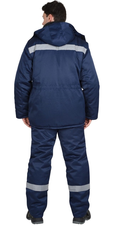 Куртка прямого силуэта, с притачной утеплённой подкладкой, с центральной застежкой на тесьму молния; ветрозащитной планкой застёгивающейся на четыре кнопки; с кулисой по линии талии со шнуром, концы шнура выводятся из обметанных петель на подборте и регулируются фиксаторами и наконечниками; втачными рукавами; отложным воротником.