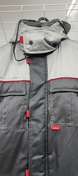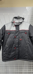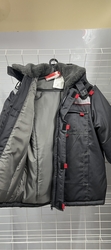 Куртка длинная прямого силуэта; с притачной утеплённой подкладкой; с центральной застёжкой на тесьму - «молния» двухзамковую; с ветрозащитной планкой на левой полочке застегивающиеся на потайную ленту «контакт» 4шт длиной 4,0см и 4-мя малыми декоративными патами контрастного цвета; с отложным меховым воротником; с подпланкой правой полочки.