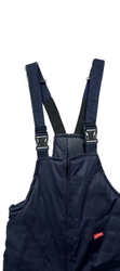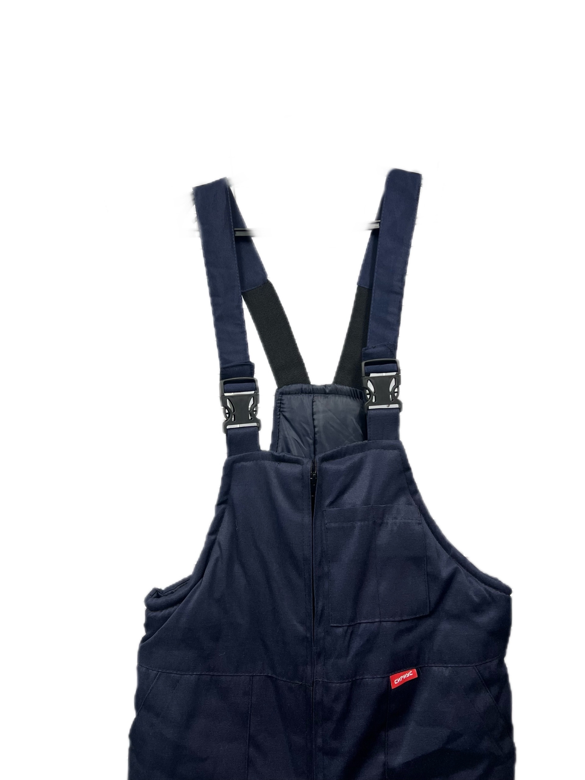 Полукомбинезон с притачной утеплённой подкладкой, с застёжкой на молнию, с боковыми накладными карманами. По спинке частично резинка для лучшего прилегания. Полукомбинезон с бретелями, длина регулируется резинкой и застежкой-фастексом.