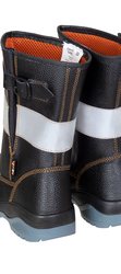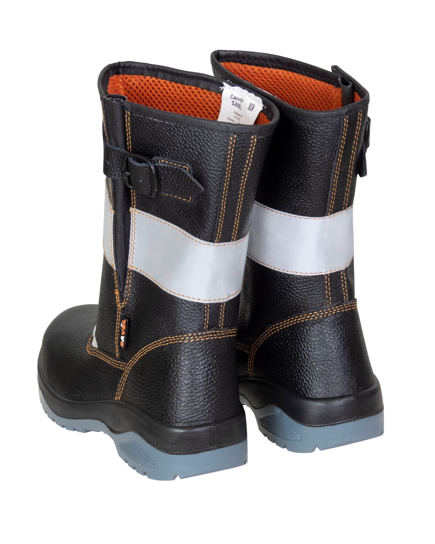 Полный комплект защитных характеристик: - Кожа с защитой от ОПЗ, МВ, МВО - Химически стойкая подошва ПУ/ТПУ (кислоты/щелочи до 20%) - Самоочищающийся протектор - Контрастная отстрочка нитками оранжевого цвета - Регулируемое голенище с защитой от сыпучих материалов - Анатомическая колодка для комфорта во время работы