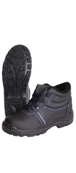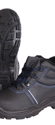 Ботинки из кожи c мягким кантом и глухим клапаном на подкладке из искусственного меха. Шнуровка, проходящая через металлические петли, обеспечивает комфортную адаптивную посадку. Светоотражающие элементы повышают видимость работников в темное время суток и на неосвещенной территории. В модели предусмотрена съемная стелька. Однослойная маслобензостойкая полиуретановая подошва литьевого метода крепления имеет вставку в пяточной части подошвы, обладающую амортизационными свойствами и способную гасить ударные нагрузки при ходьбе. Глубина протектора ходового слоя обеспечивает хорошую сцепляемость с поверхностями и препятствует скольжению за счет рельефа протектора. Металлический подносок обеспечивает защиту пальцев стопы от механических повреждений ударной прочностью до 200Дж.