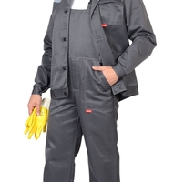 Куртка короткая, с отложным воротником с центральной потайной застежкой на 4-ре обметанные петли и 4-ре пуговицы (на потайной застежке) и 5-ая верхняя (на кокетке полочки) сквозная; застежкой притачного пояса на 1-у обметанную петлю и 1-у пуговицу, В куртке предусмотрен кант контрастного лимонного цвета 3мм. В верхней части полочек накладные нагрудные карманы с клапанами, застёгивающимися на потайную ленту «контакт». Полочки с нижними накладными большими карманами, с боковым наклонным входом в карман. В шве соединения кокетки кант контрастного лимонного цвета 3мм. Рукава втачные с притачными манжетами, с частичной стяжкой на эластичную тесьму. Воротник втачной отложной. Пояс притачной с эластичной тесьмой на уровне боковых швов куртки.