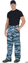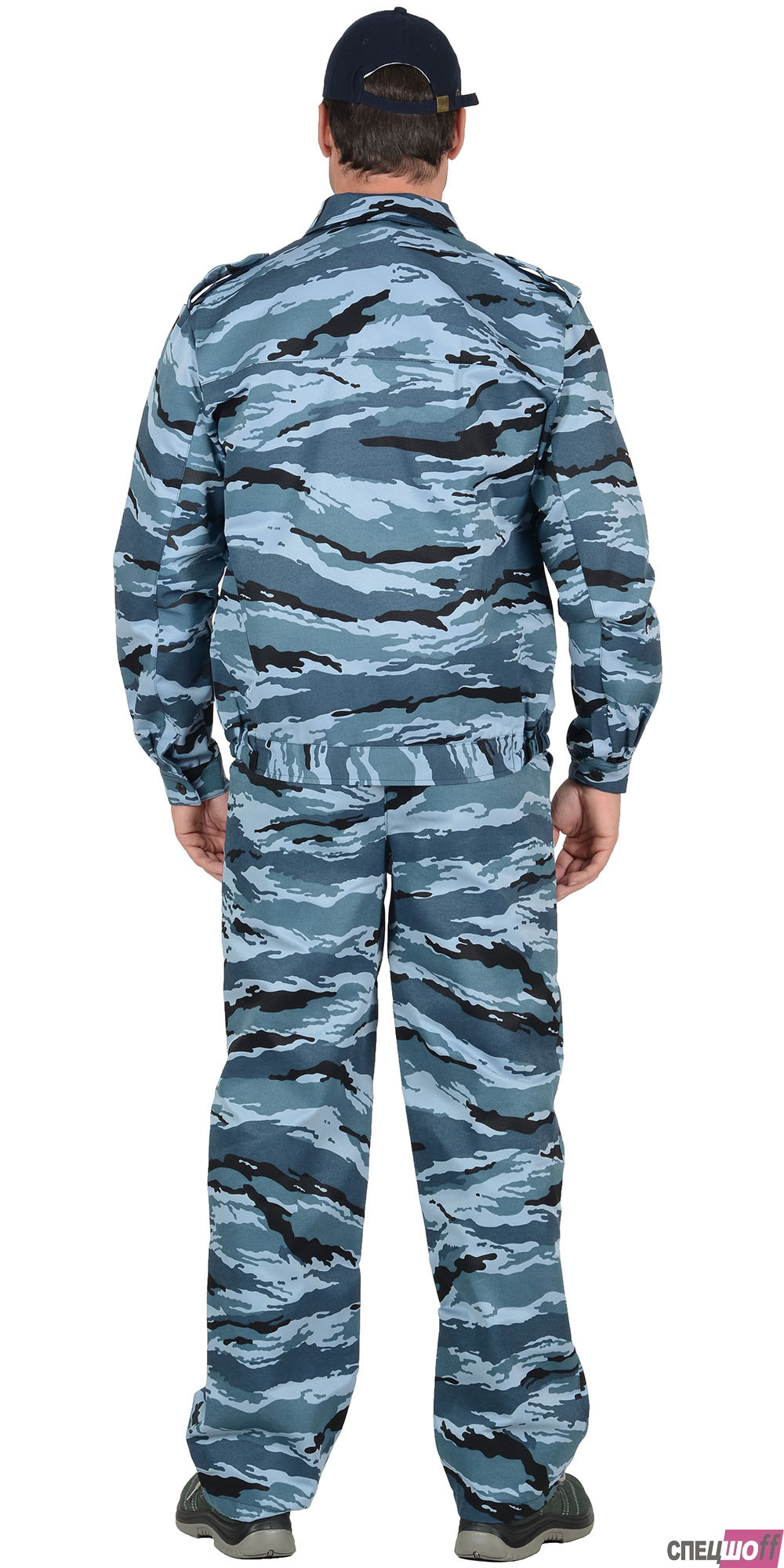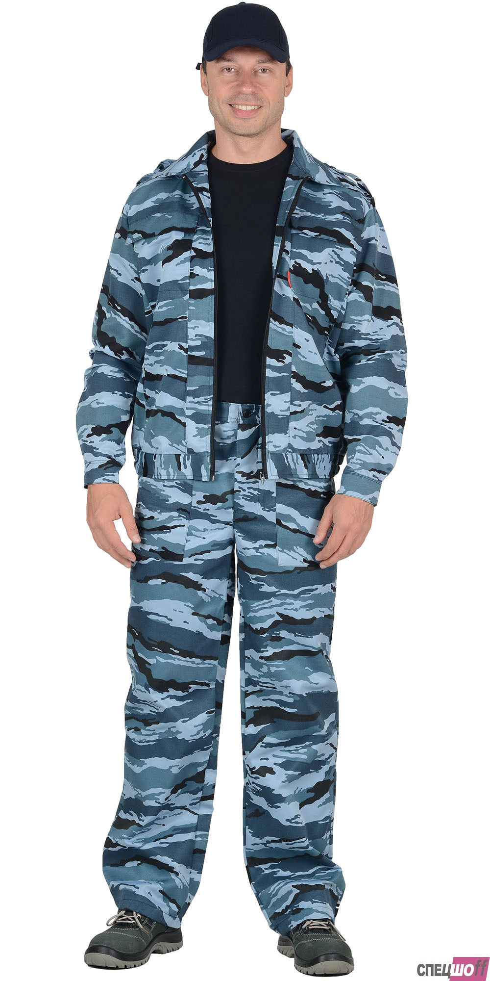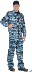 Куртка короткая, прямого силуэта, с отложным воротником, с центральной бортовой застежкой на молнию; с погонами по плечам на пуговицах, с притачным поясом, понизу частично стянутым резинкой; с нагрудными карманами, с боковыми карманами в вертикальных швах. Рукава, втачные, двухшовные с манжетами на пуговицах. Брюки с притачным поясом, застёгивающимся на 1 петлю и пуговицу; с 5 шлевками и резинкой ткацкой по боковым швам брюк; с застежкой гульфика на три петли и пуговицы; с двумя накладными боковыми карманами с наклонным входом. Ткань верха: смесовая с ВО пропиткой состав: 80% п/э, 20% х/б; пл. 220 г/м² ТУ 8550-001-81391241-2008