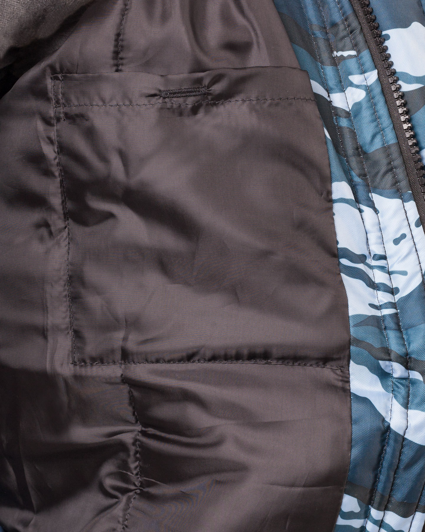 Куртка короткая, с притачной утеплённой подкладкой, с центральной застёжкой на двухзамковую тесьму-«молния» и внешним ветрозащитным клапаном, застёгивающимся на кнопки.