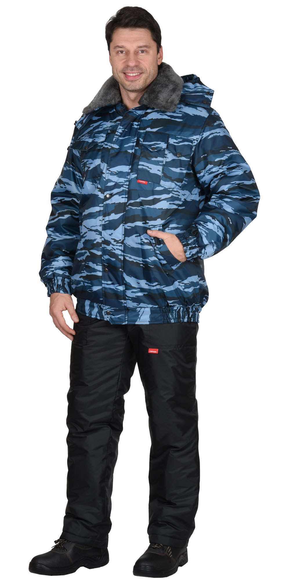 Куртка охранника мужская. зимняя "ПОЛЮС" цвет камуфляж "Серый вихрь"