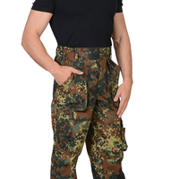 Брюки прямые; с притачным поясом, стянутым на эластичную тесьму; с пятью узкими шлевками на поясе; с карманами с наклонным входом на передних половинках; с накладными карманами на боковых швах застегивающиеся на тесьму - «молния»; с притачным широким поясом, стянутым эластичной тесьмой. В пояс брюк вставлен шнур, выведенный через блочки. Ткань: «CROWN» состав: 80% п/э 20% х/б, пл. 220г/м2 ГОСТ 12.4.280-2014