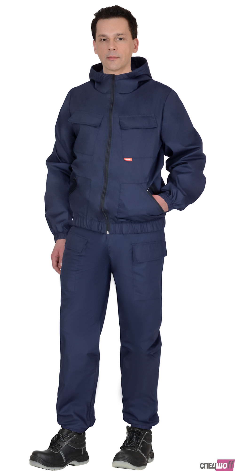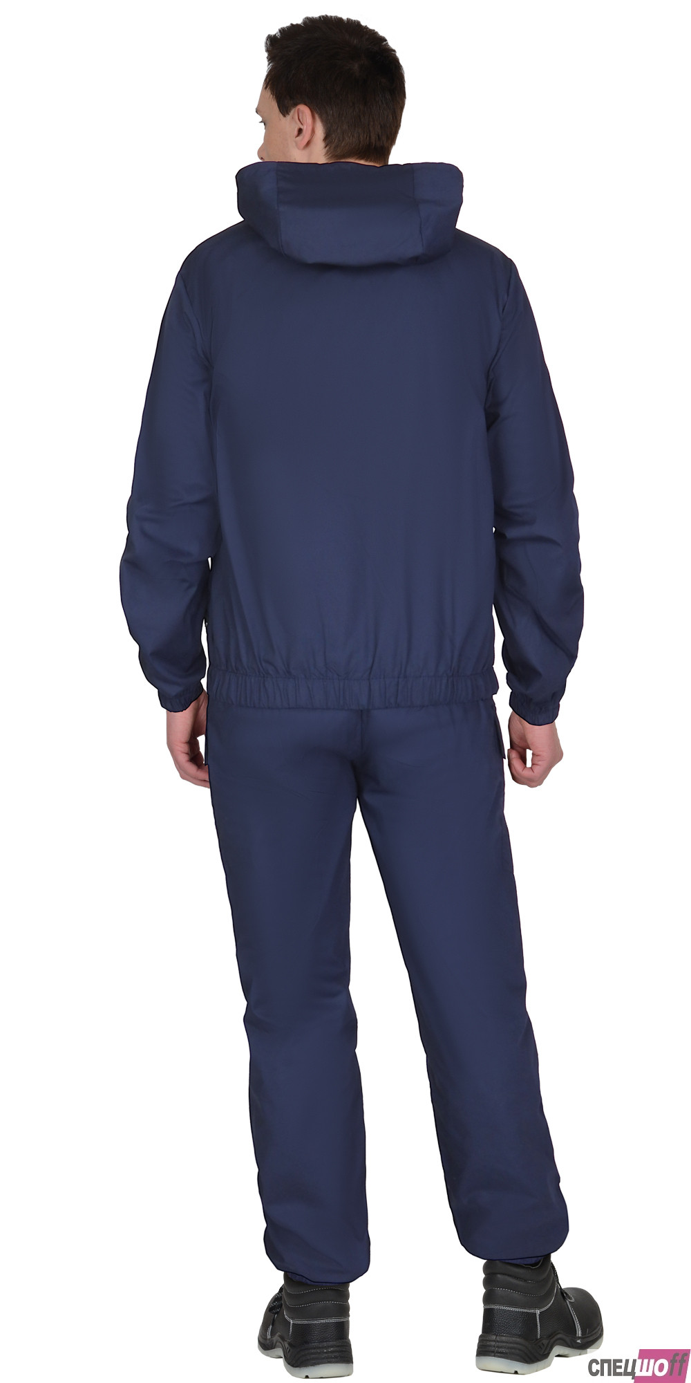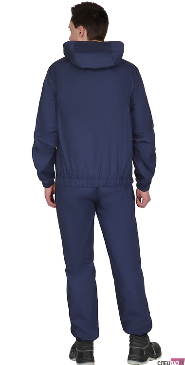Костюм состоит из куртки и брюк. Куртка укороченная, с центральной застёжкой на молнию, капюшон с утяжкой по лицевому вырезу, верхние накладные карманами с клапанами, застегиваются на потайную липучку, нижние накладные карманы на молнию.
