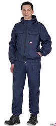 Тк."Рип-Стоп", ВО, 65% п/э., 35% х/б, 215 г/кв.м. Куртка короткая, с отложным воротником, с центральной бортовой застежкой на тракторную молнию ; с притачным поясом частично стянутым резинкой; с нагрудными карманами и клапанами на липучках, с боковыми карманами в вертикальных швах. Рукава, с манжетами на пуговицах.Брюки с притачным поясом, заст.гивающимся на пуговицу; с 5 шлевками и эластичной тесьмой по боковым швам брюк; с застежкой гульфика на три петли и пуговицы; с двумя накладными боковыми карманами с наклонным входом. ГОСТ 12.4.280-2014