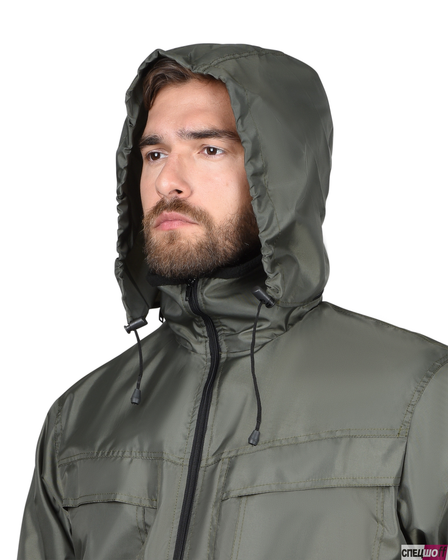 Материал верха основой: ткань полиэфирная, с пропиткой ВО, пл. 105 г/м², состав 100%ПЭ, хаки