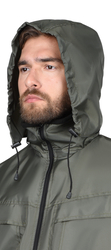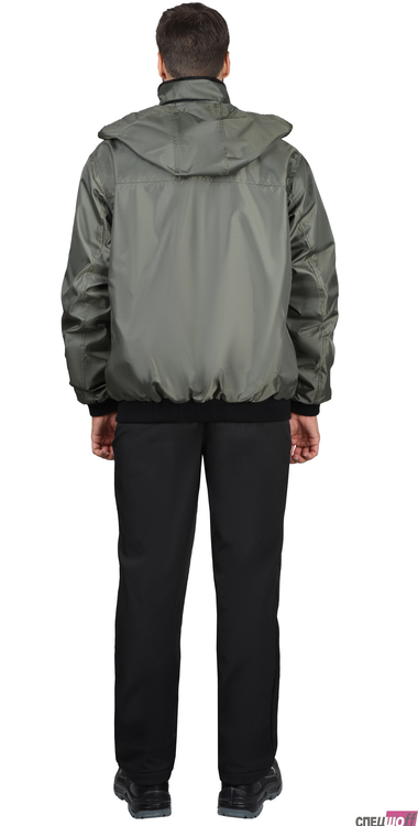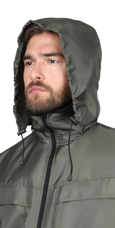 Куртка прямого силуэта, с притачной подкладкой из трикотажного полотна флис, с центральной застёжкой на молнию, с воротником стойка, с отрезным поясом и манжетами из кругловязаного трикотажного полотна, с верхними и нижними накладными карманами. Куртка с капюшоном, убирается в карман воротника, который застёгивается на молнию.