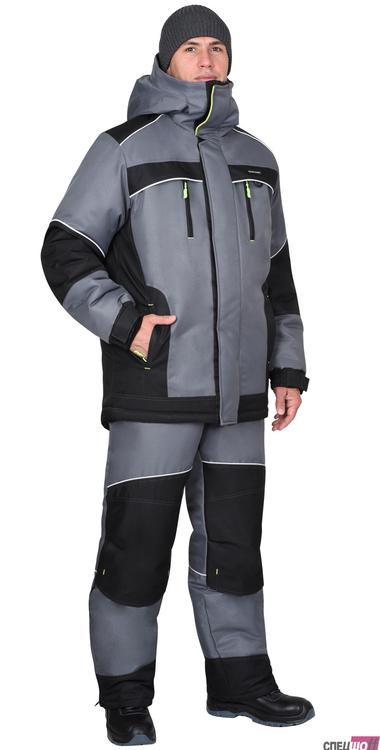 Костюм зимний 3 класса защиты предназначен для IV климатического пояса, состоит из куртки и брюк. В костюме предусмотрен СВ-кант для обеспечения сигнальной видимости.