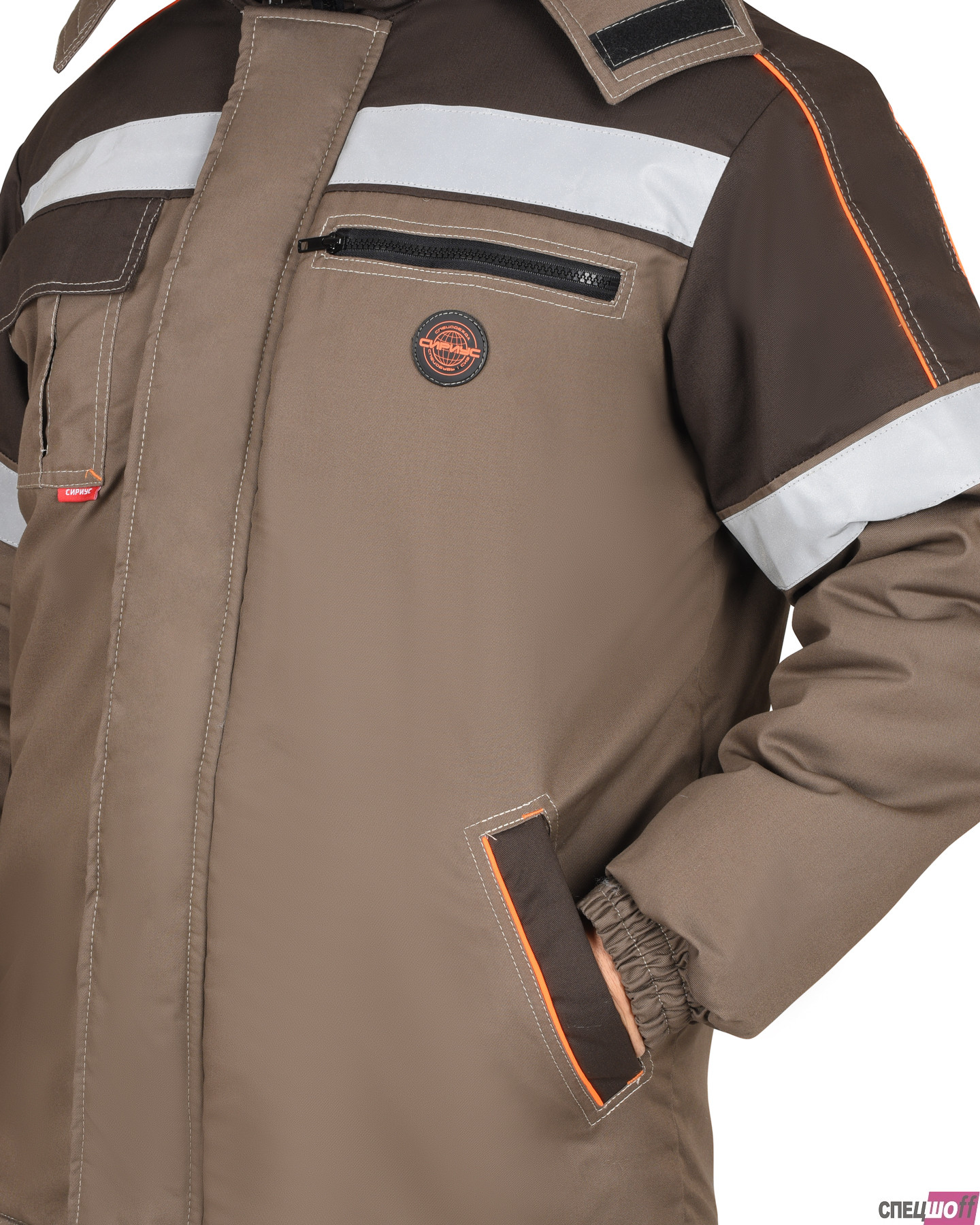 Костюм зимний состоит из куртки и брюк, в костюме предусмотрена светоотражающая полоса для обеспечения видимости.